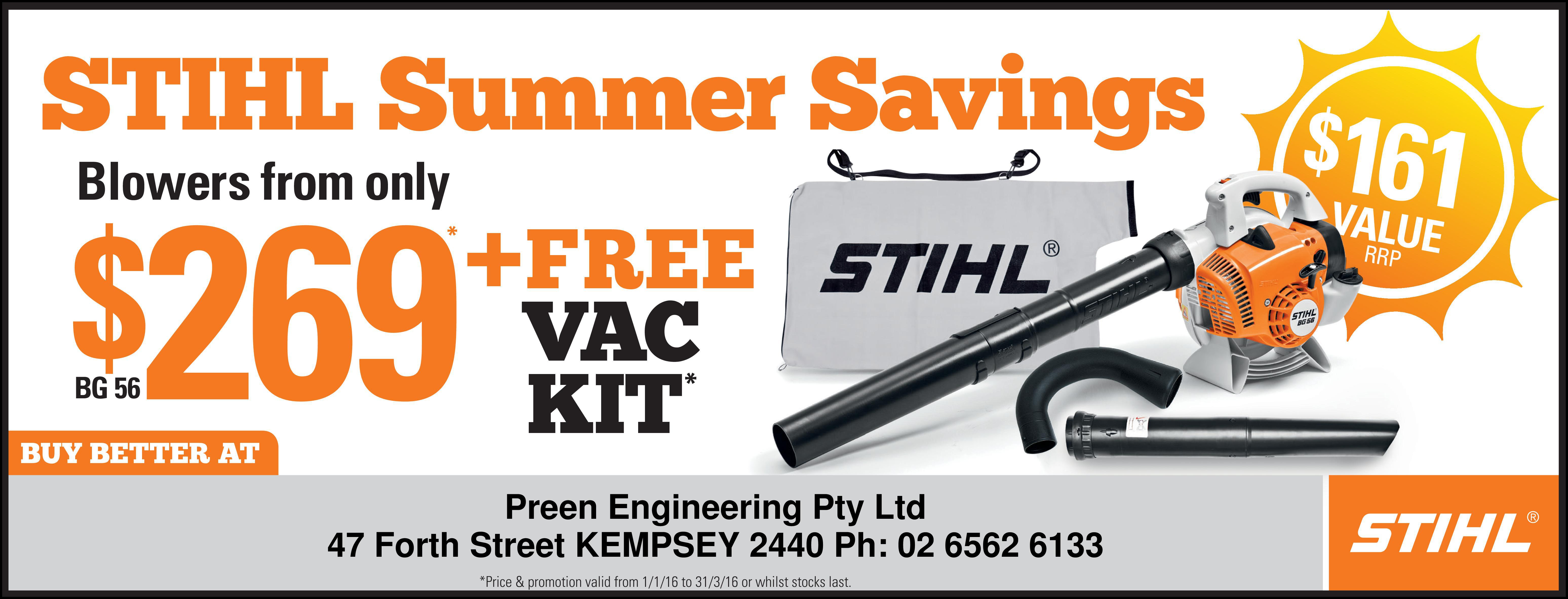 With an inventory including chain saws, grass trimmers, blowers, hedge trimmers, cleaners, and other accessories, Preen Engineering has the Stihl products you need at prices that nobody in the business can match.